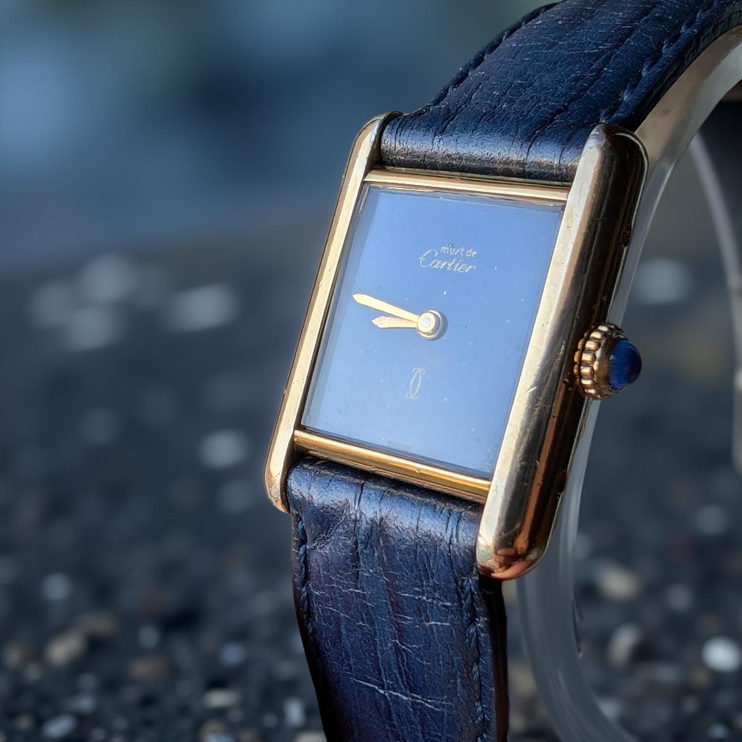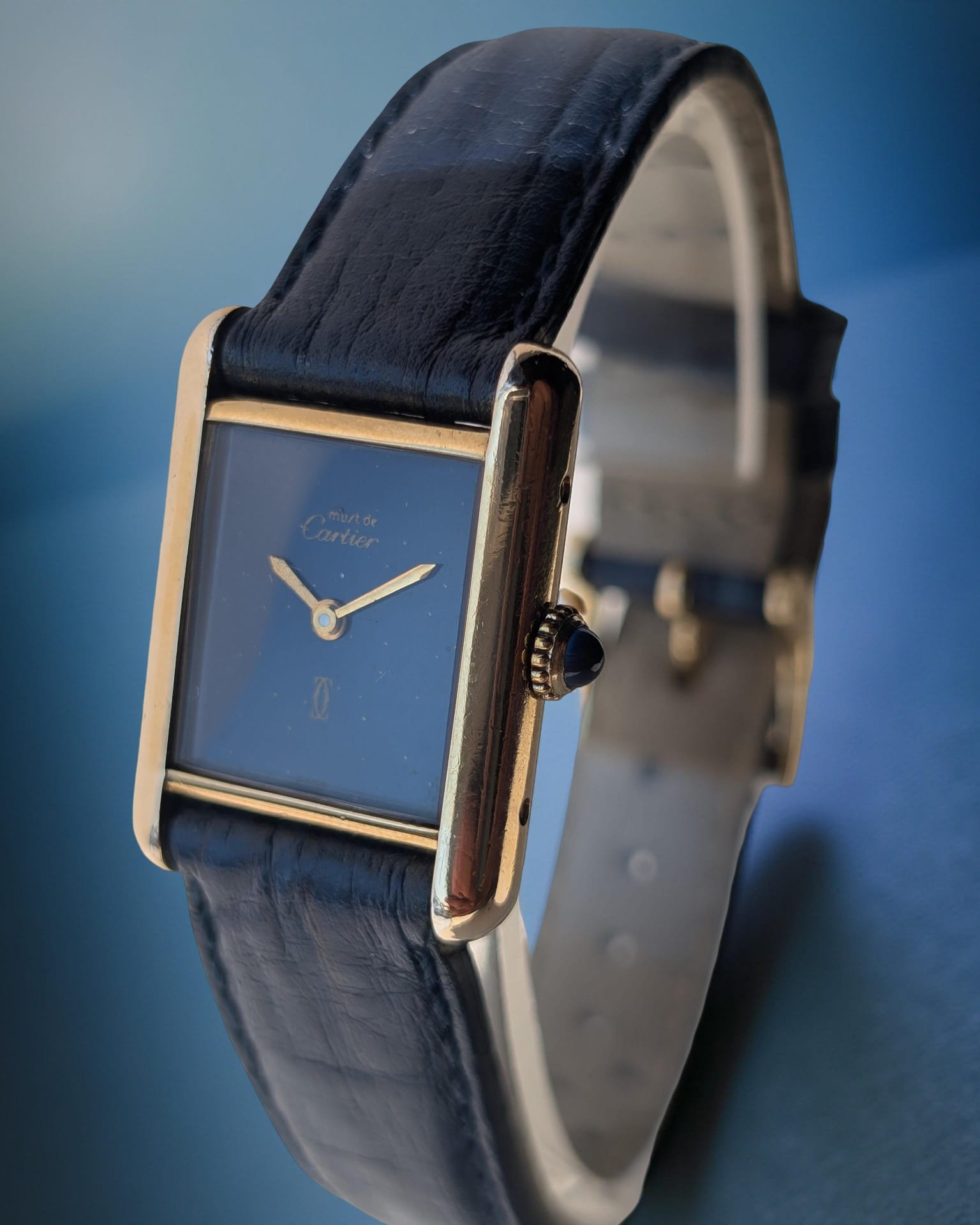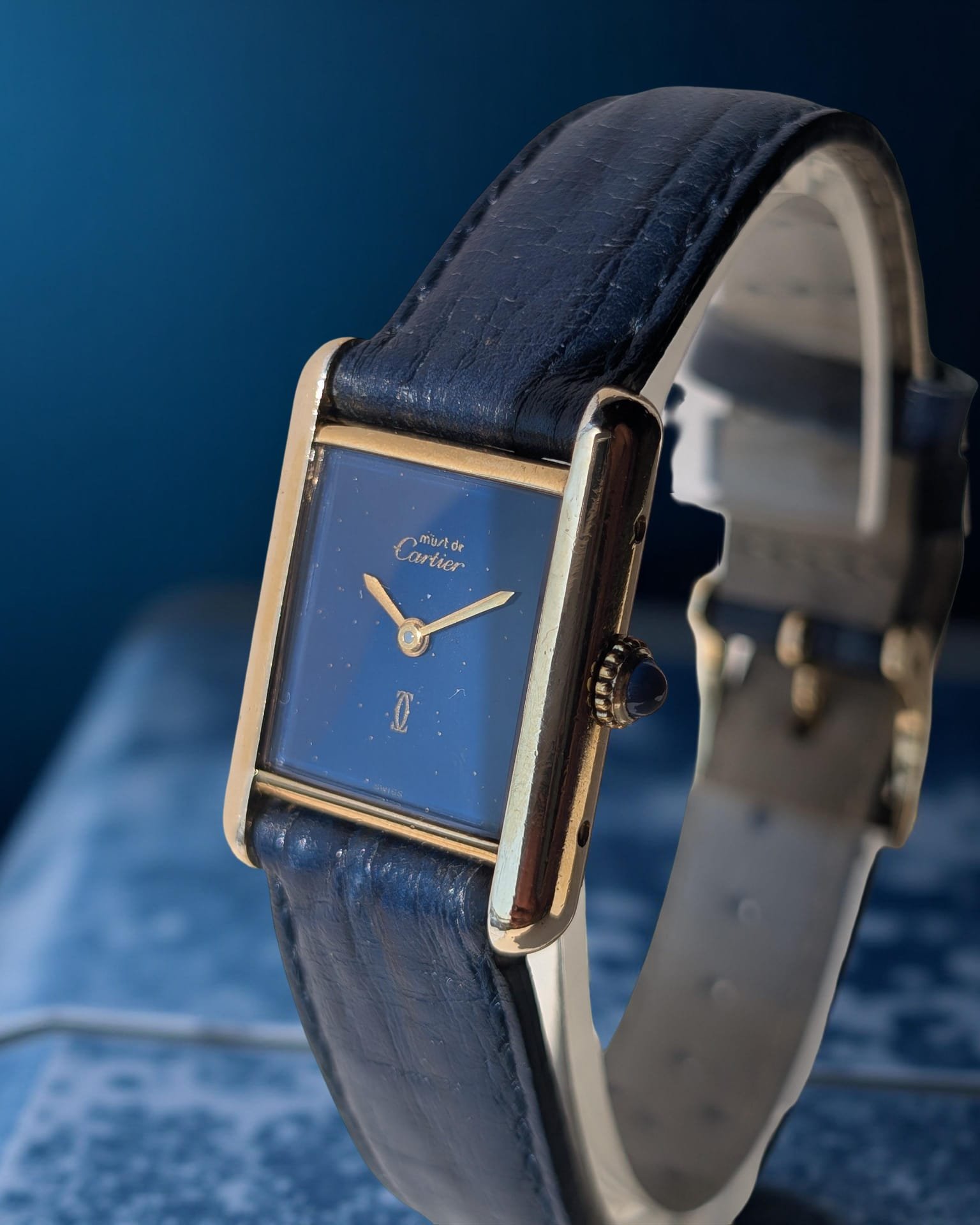 Cartier Must Tank – Ladies’ vermeil watch with deep blue dial