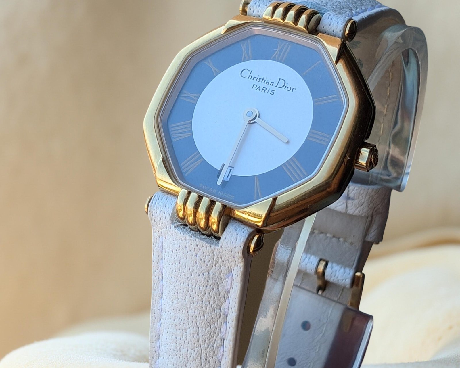 ⌚ Christian Dior Paris – Vintage Ladies’ Watch – Octagonal Gold-Plated Case – Roman Dial with Date