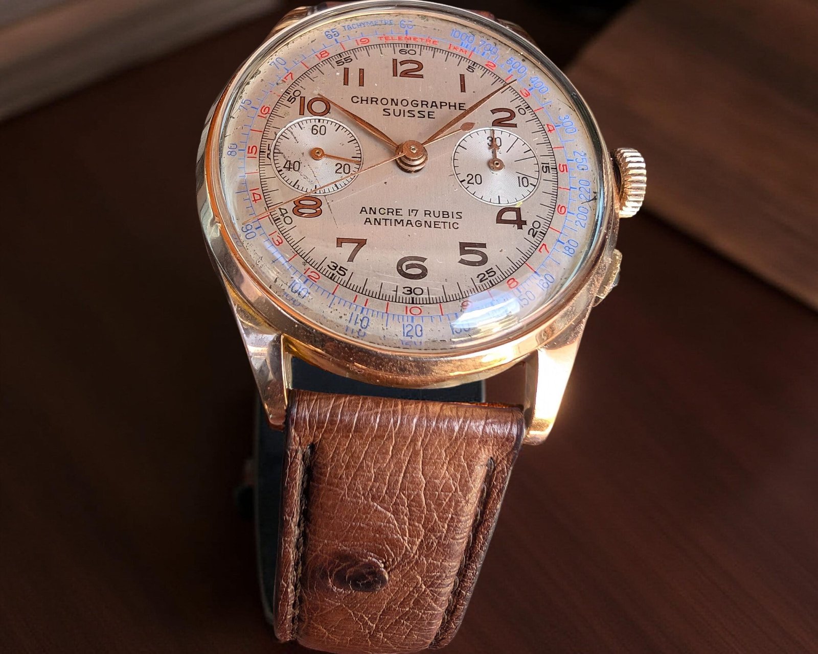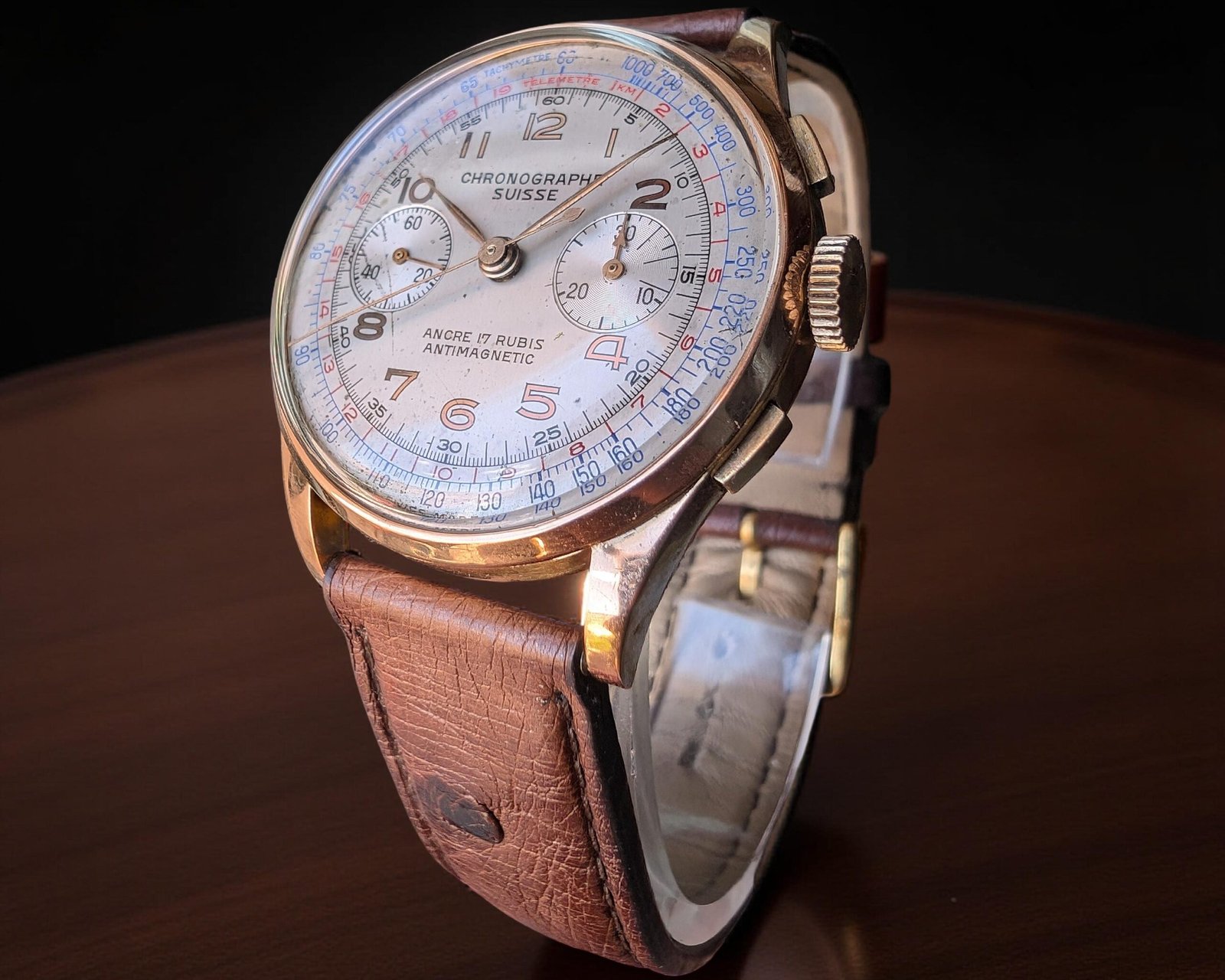 Chronographe Suisse – Vintage 18K Gold (750‰) Manual Chronograph Watch